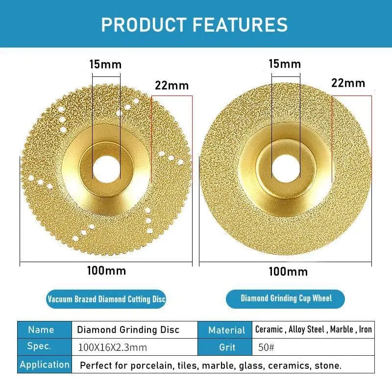 - Dual Function: Functions as both a cutting disc (for straight lines) and a Diamond Grinding Cup Wheel (for shaping and smoothing edges).