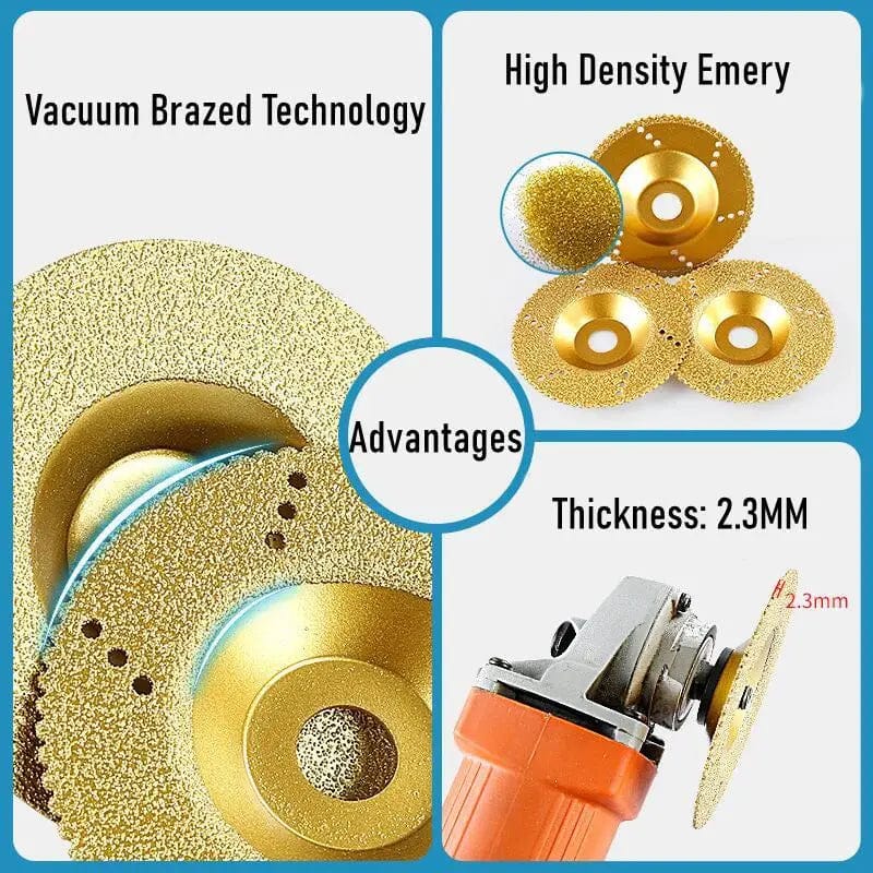- Vacuum Brazed Technology: Provides maximum exposure of the diamond particles, resulting in a much faster cut and a longer tool life compared to standard diamond wheels.