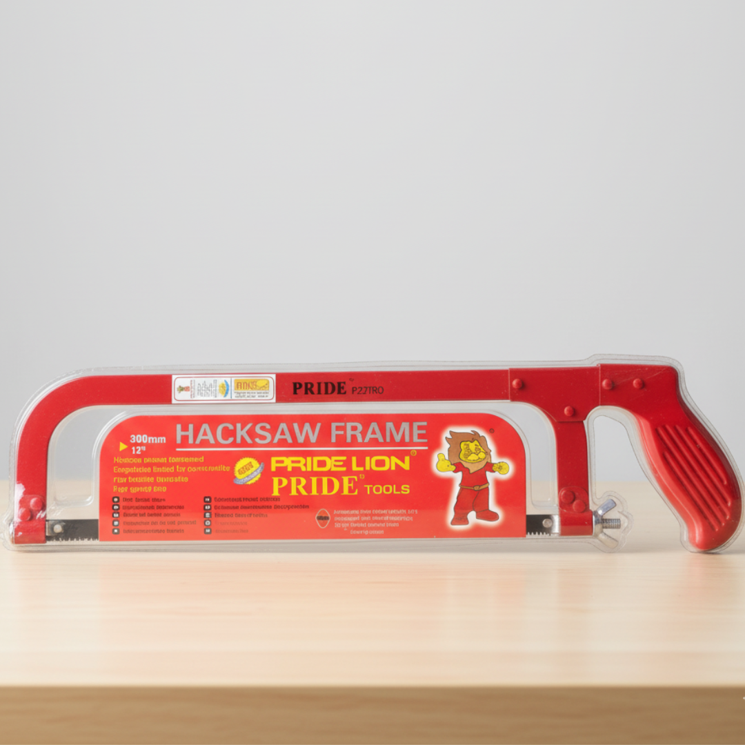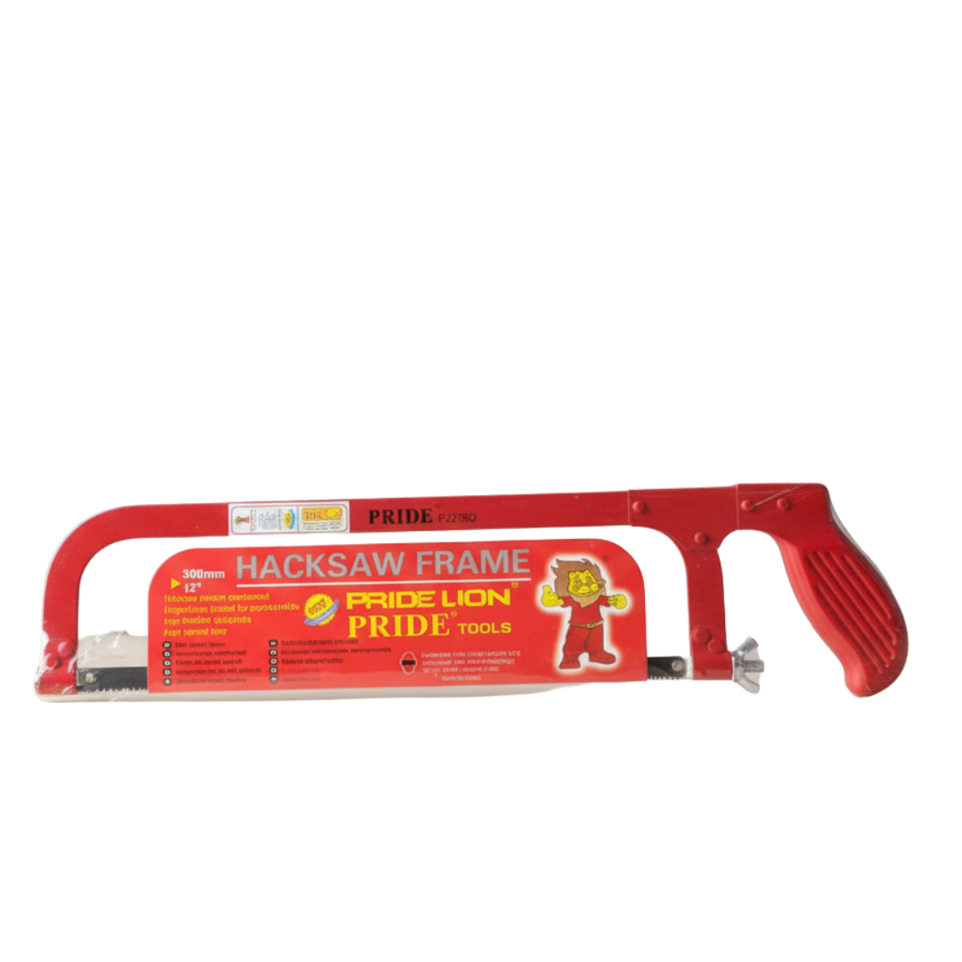 The PRIDE Lion Hacksaw Frame (Model PU21R0) is an essential hand tool for any tradesperson or serious DIY enthusiast. Designed to hold 300mm (12-inch) hacksaw blades, this frame provides the sturdy support and proper tension needed for effective cutting through various materials, including metal pipes, rods, plastic, and even small wooden pieces.